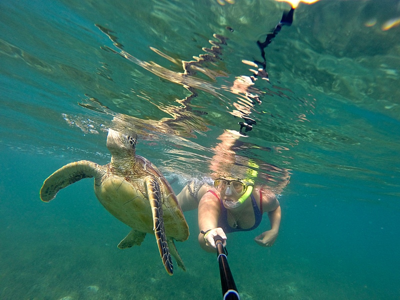 In less than an hour I’d seen so many different sea creatures I could have gone home happy! But I was intent on finding at least one turtle and so I followed the rest of our group around to the main beach to try and find one…and found myself bumping in to two of them!