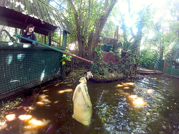 We also had the chance to visit Marineland Melanesia during the morning. Entry is usually $18 but drops to $15 for Cairns Adventure Cruises customers and is well worth a visit. Not only do they have a host of tribal artefacts but it’s home to Cassius, the biggest croc in captivity! There is plenty of time to catch the croc feeding at 10.30am and it’s great that you can get so close to these magnificent creatures. Getting splashed by the water from a hungry saltie exploding out of the water to grab his brekkie was the perfect way to finish off a fantastic morning!